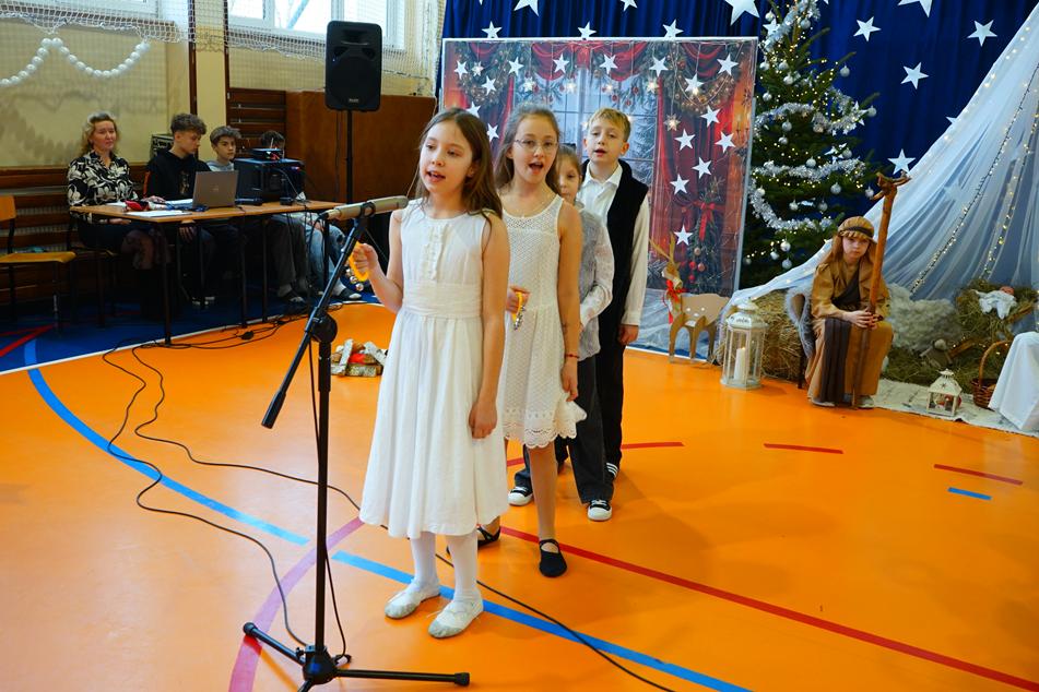 Dziś (17.12.2025r.) w naszej szkole odbyły się Jasełka, aktorami byli uczniowie klasy III. Przy licznej widowni uczniowie, pod kierunkiem wychowawcy, wcielili się w swoje role, z zaangażowaniem odegrali postacie z pisma świętego. Zaśpiewali pięknie kolędy, wprowadzając wszystkich obecnych na przedstawieniu w świąteczny nastrój.