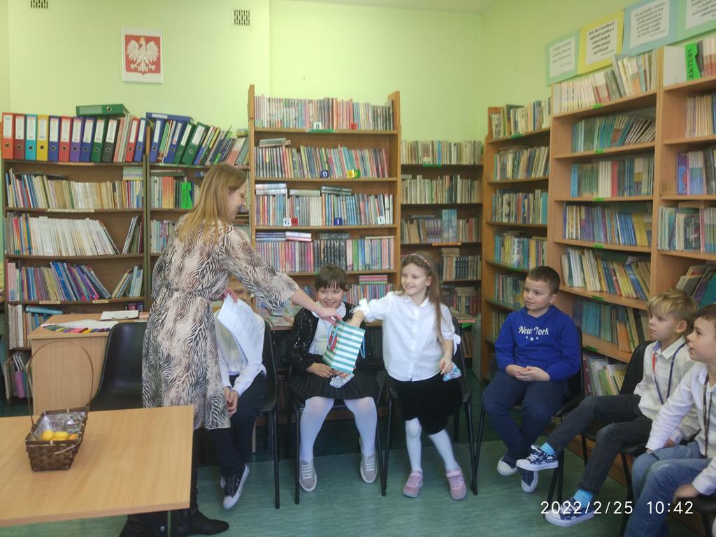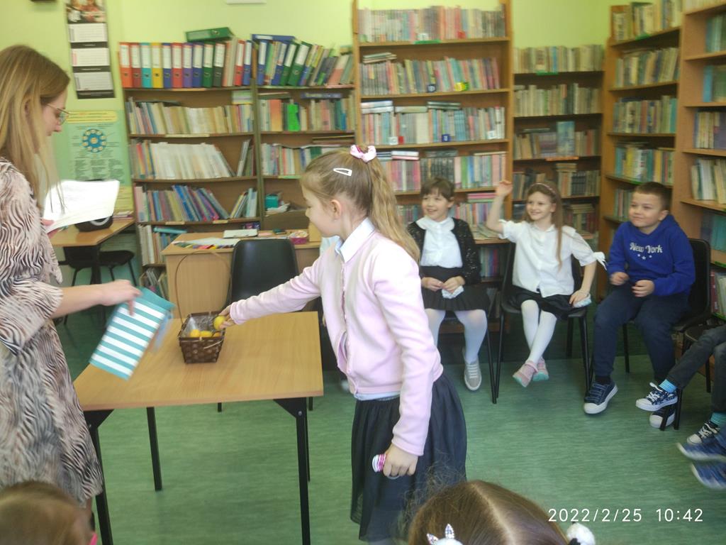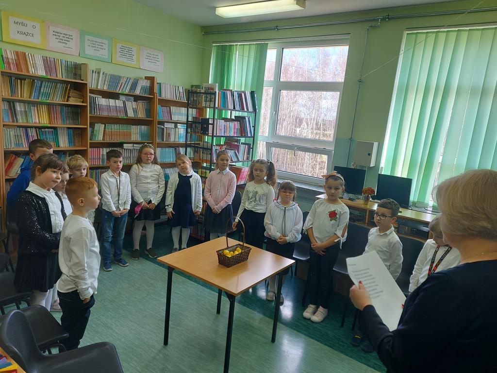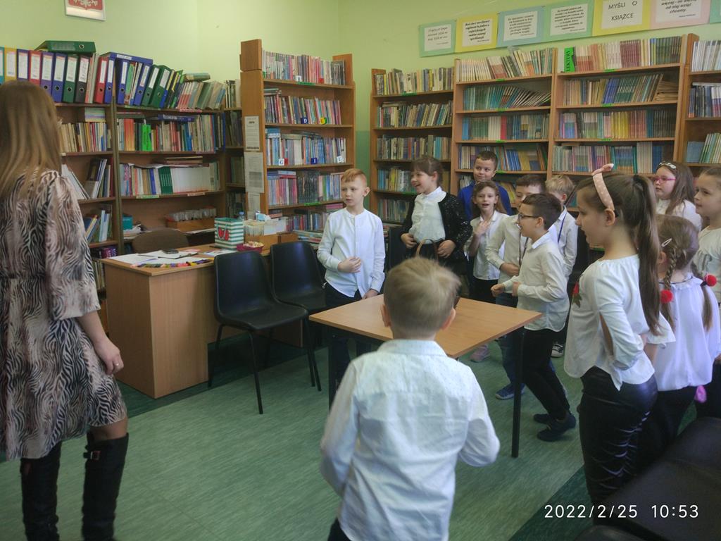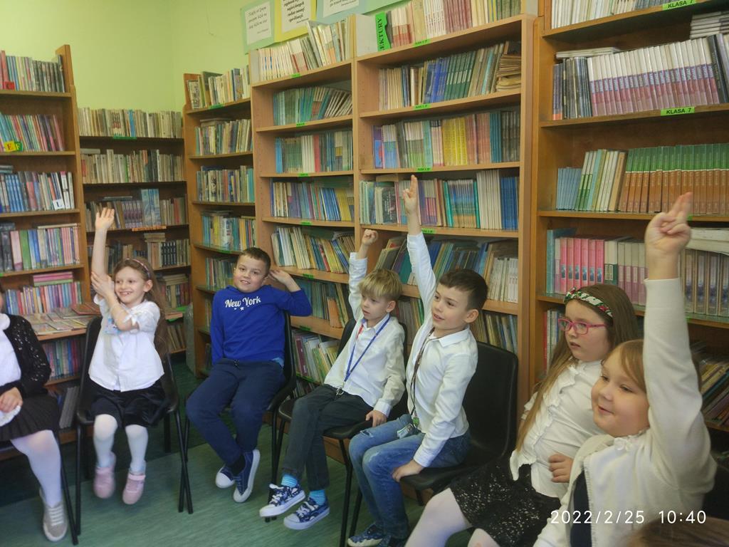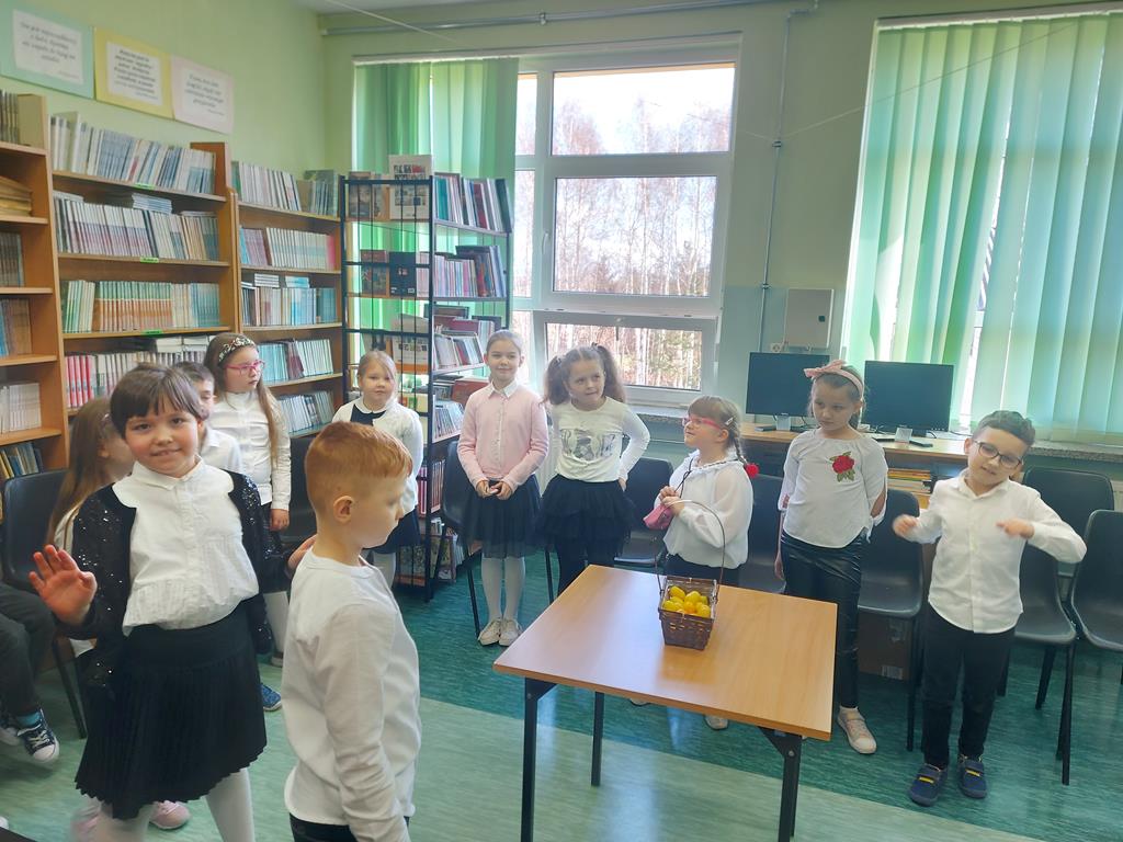 Uczniowie mieli za zadanie rozwiązać quiz ze znajomości bajek oraz nauczyli się piosenki o czytaniu książek. Poradzili sobie wspaniale.